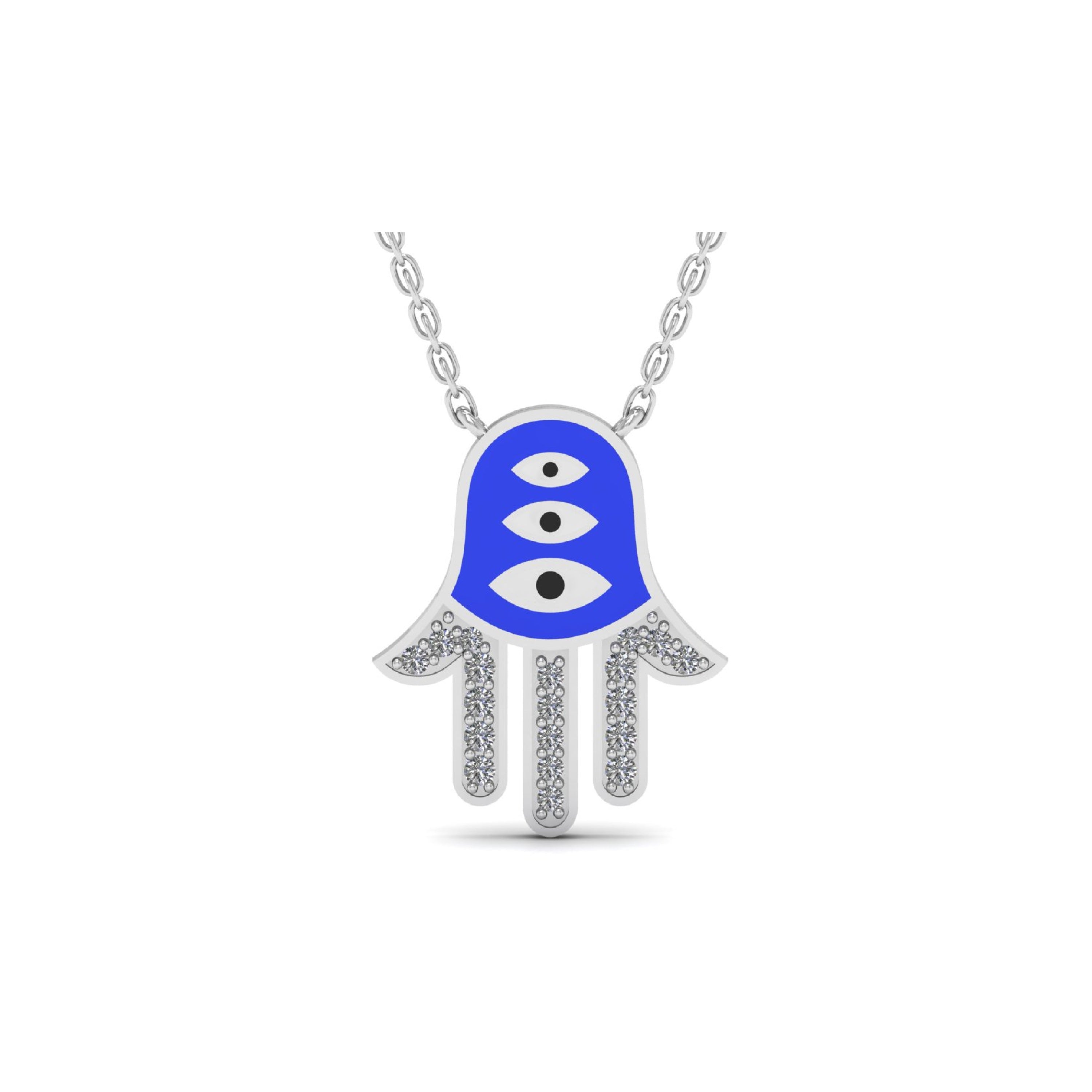 Evil Eye & Hamsa White Blue Pendant Necklace