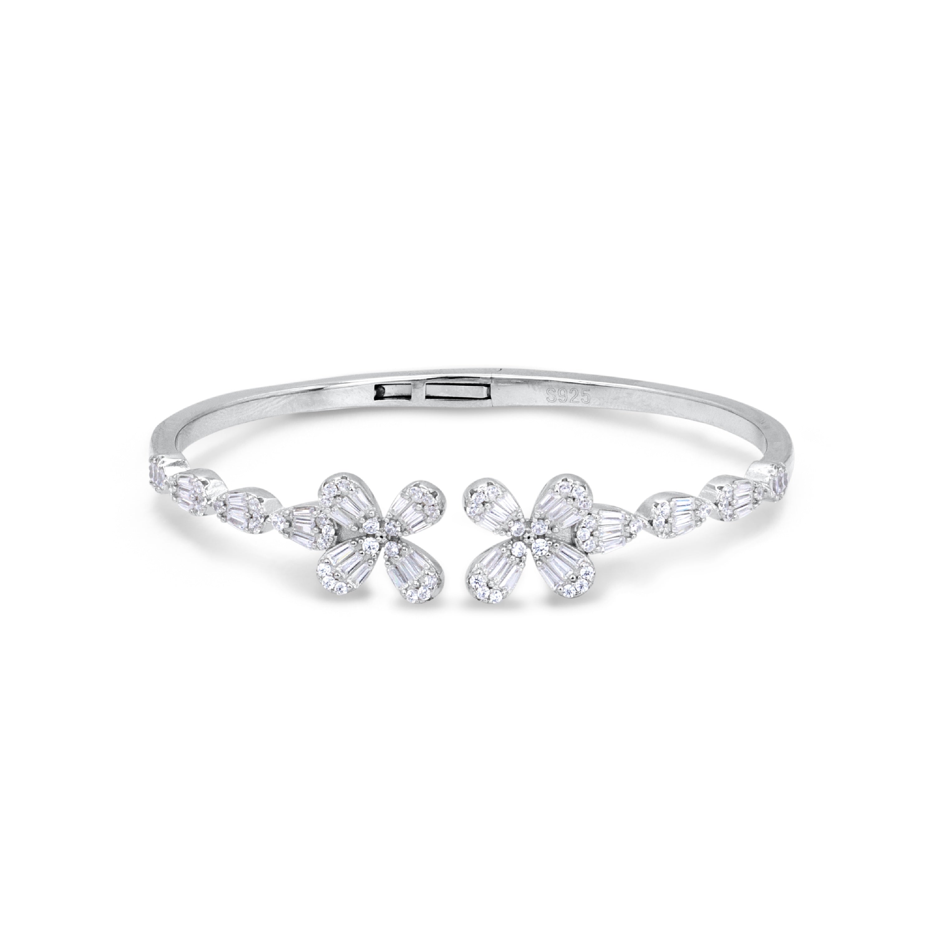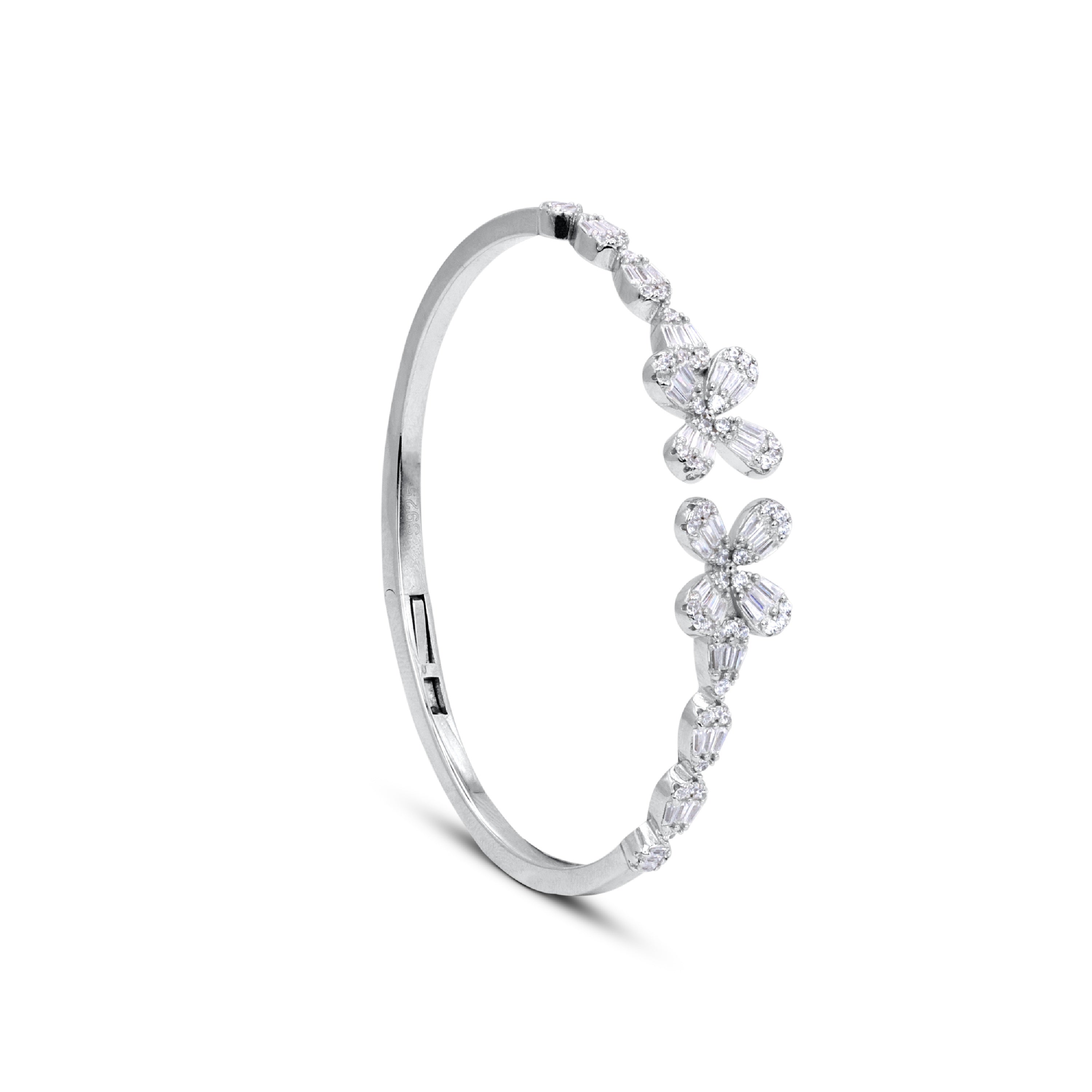 Floral Elegance Silver Bangle
