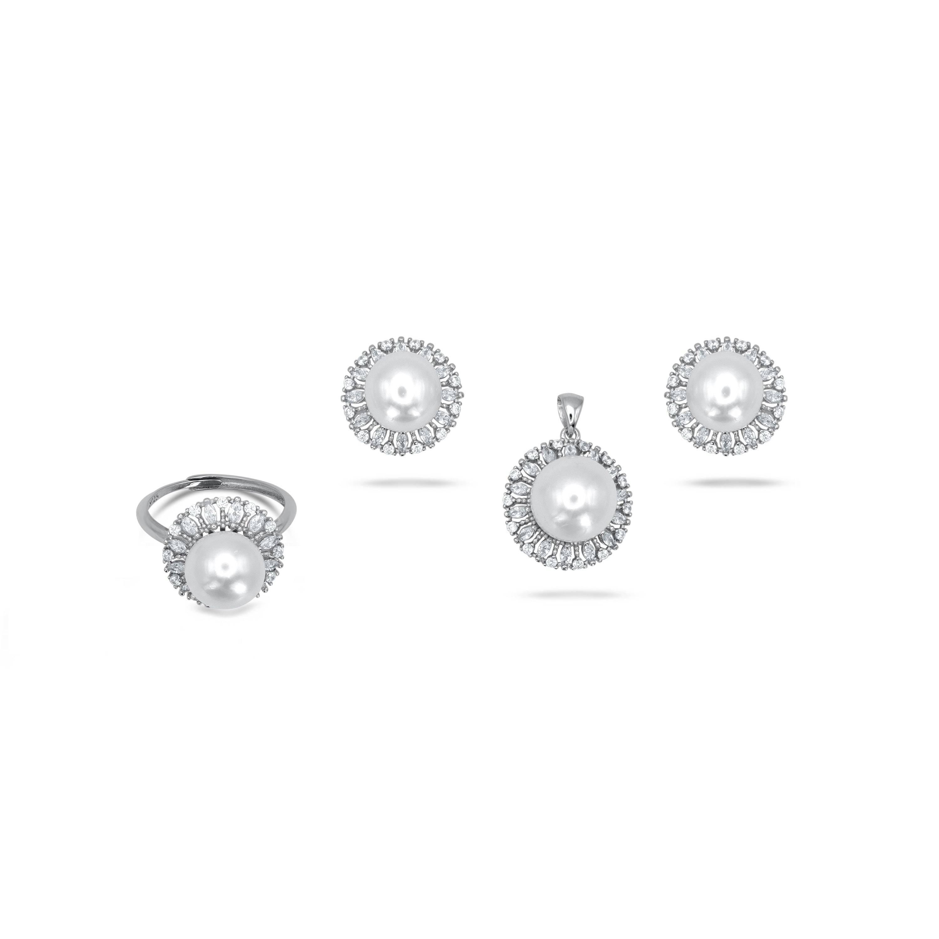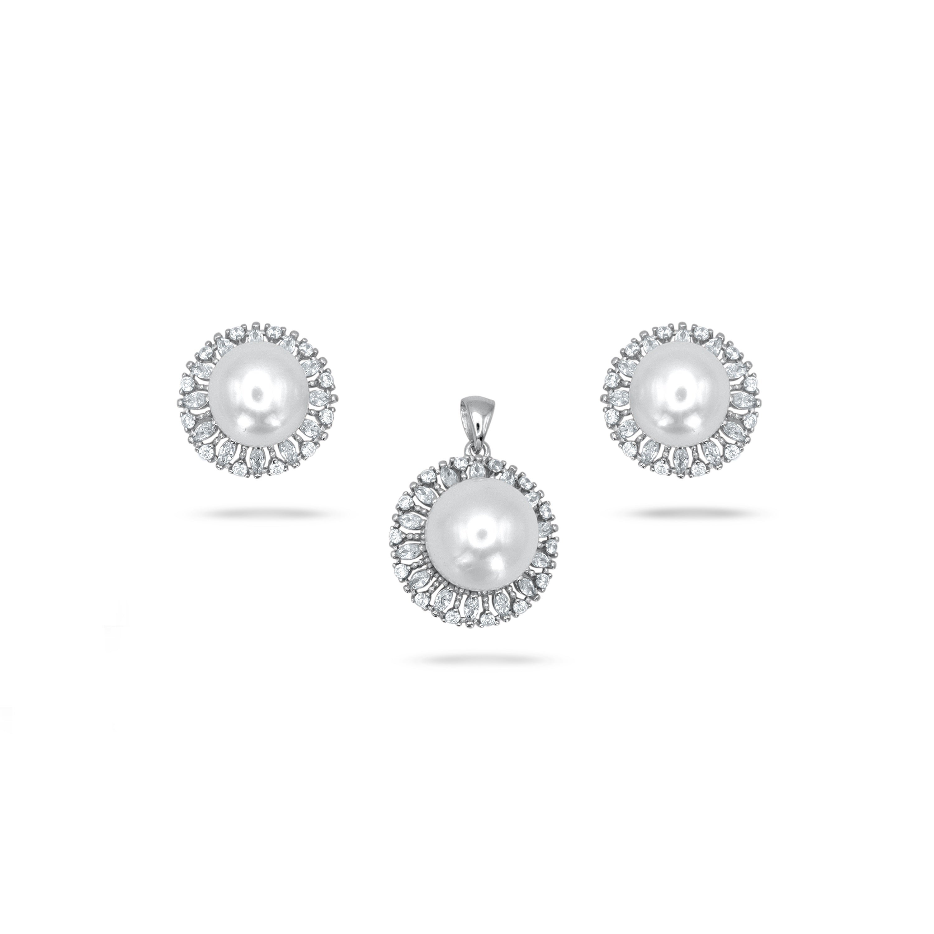 White Button Pearl Pendant Set